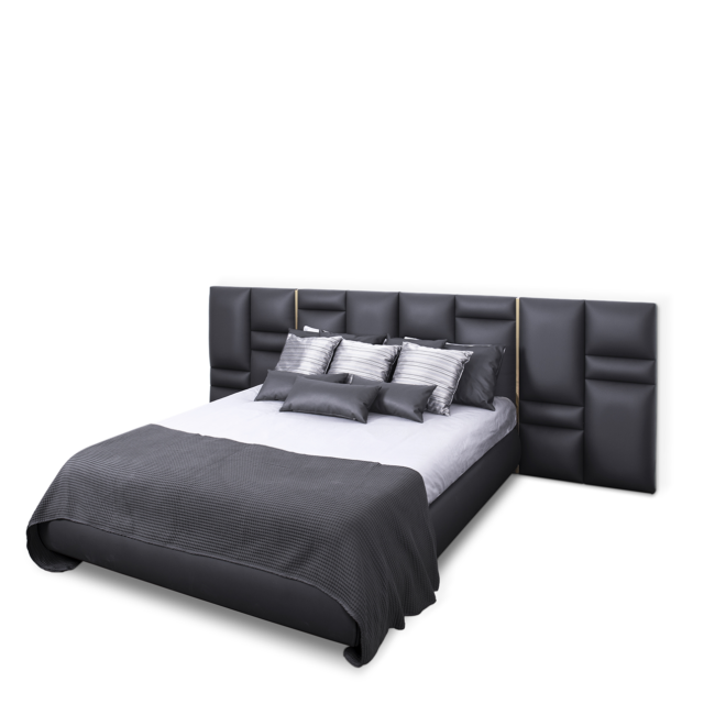Inspired by the walls of French castles, the Château Bed is a magnificent luxury piece that transforms any bedroom design into an exclusive chamber fit for royalty. Crafted with exquisite leather upholstery and elegant polished brass bars, this designer bed features a modern headboard that makes a striking statement in any setting.