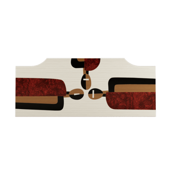 Natalia Bed is a modern statement bed design that brings artistic flair and contemporary elegance to your bedroom decor. Its headboard features a striking marquetry design inspired by Malevich’s bold geometric forms and creative perspectives. This intricate pattern creates a visually captivating focal point, adding depth and sophistication to the bedroom.
