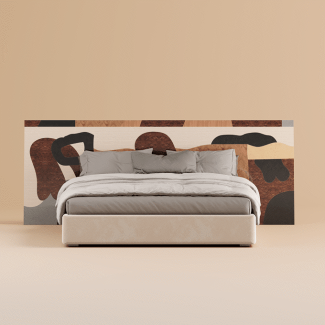 Verona Bed is an artistic bed designed for interior lovers and design collectors. Verona embodies contemporary elegance and craftsmanship, featuring a marquetry headboard made using the marquetry technique with abstract and raw shape patterns of inlay wood inspired by modern art. Ideal for transforming master bedrooms into eclectic sanctuaries, it offers a sophisticated statement piece for contemporary living spaces. Crafted with premium materials, Verona promises durability and timeless appeal, ensuring every night is a masterpiece of comfort and style.