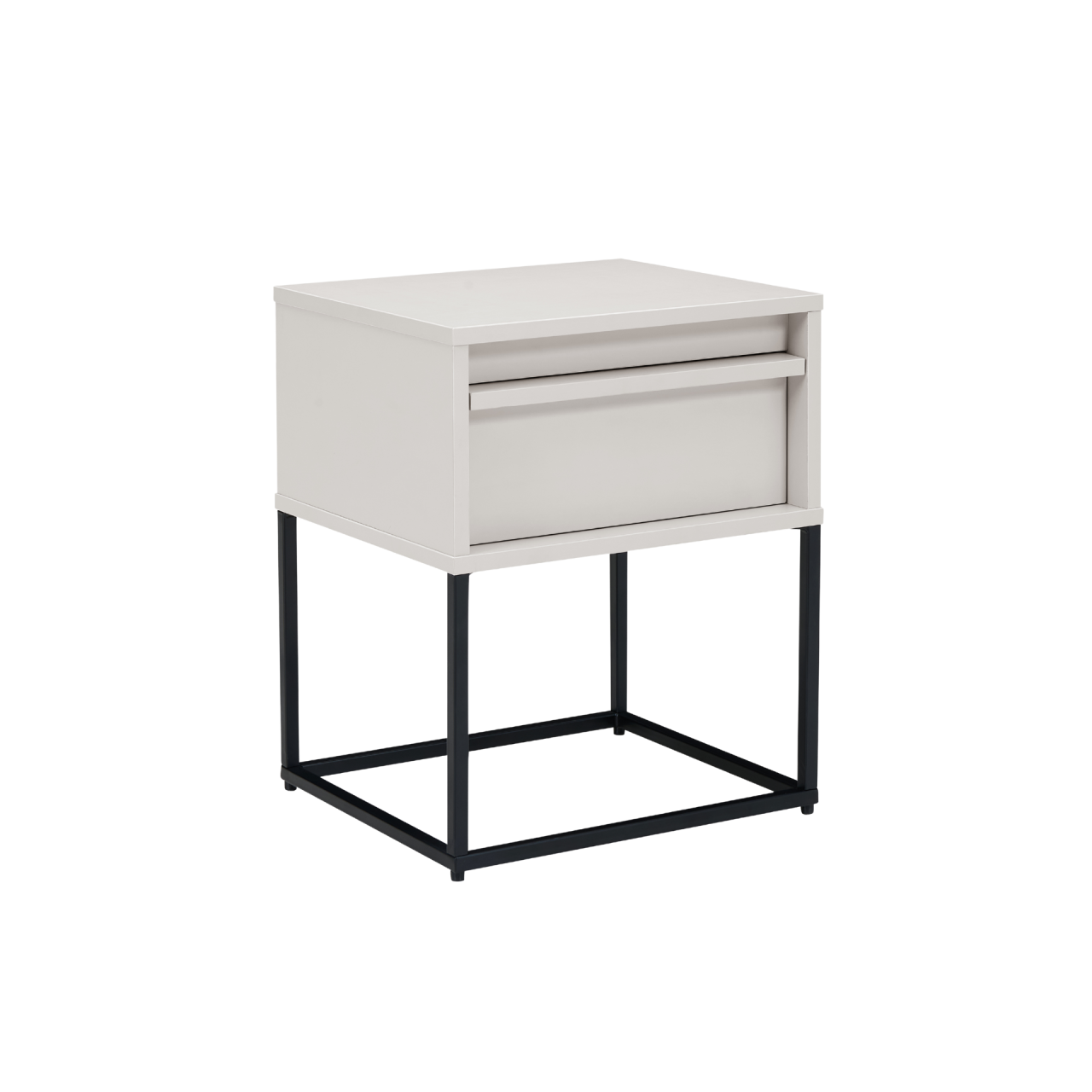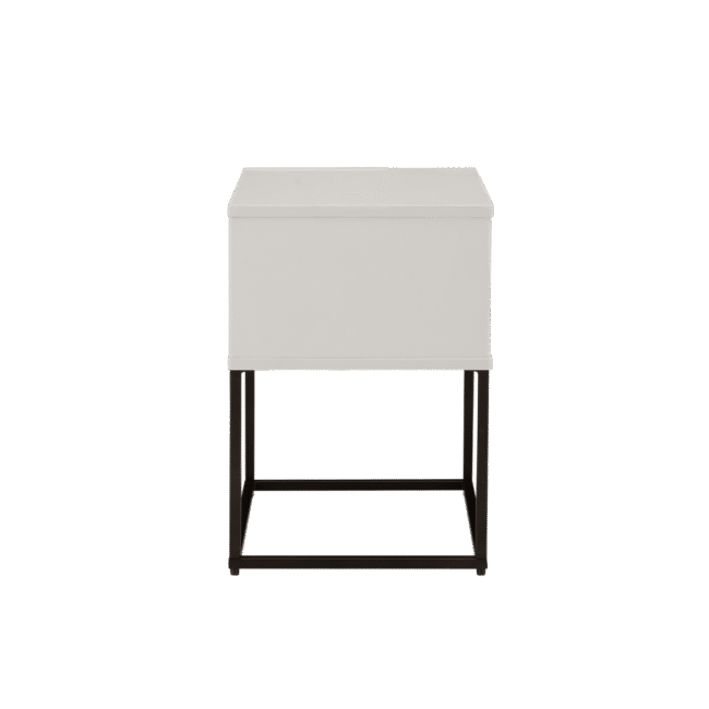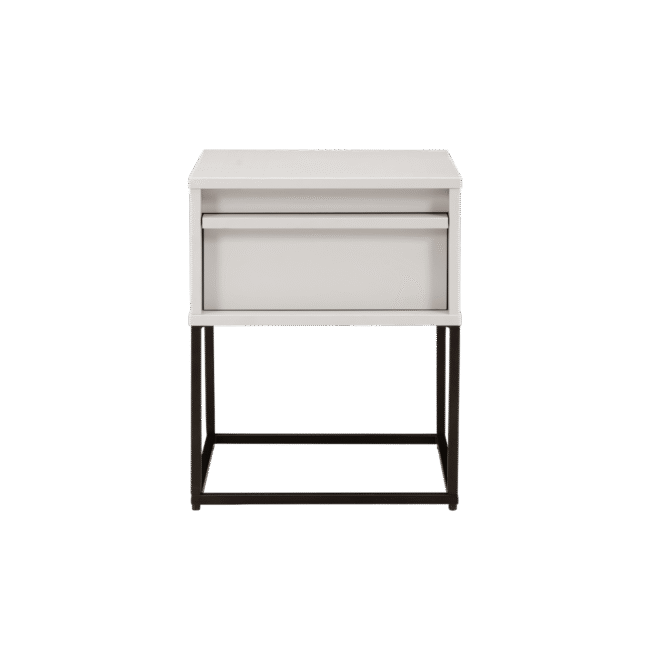 The Albion Single Drawer Bedside is a modern, minimalist piece with smooth surfaces and contrasting colours. Its seamlessly integrated drawer and handle, crafted from the same material and finish, create a cohesive look. The sturdy rectangular leg base adds stability while complementing the piece’s clean aesthetics. Constructed with durable materials, it is designed to align with sustainable living practices.
