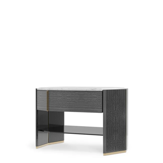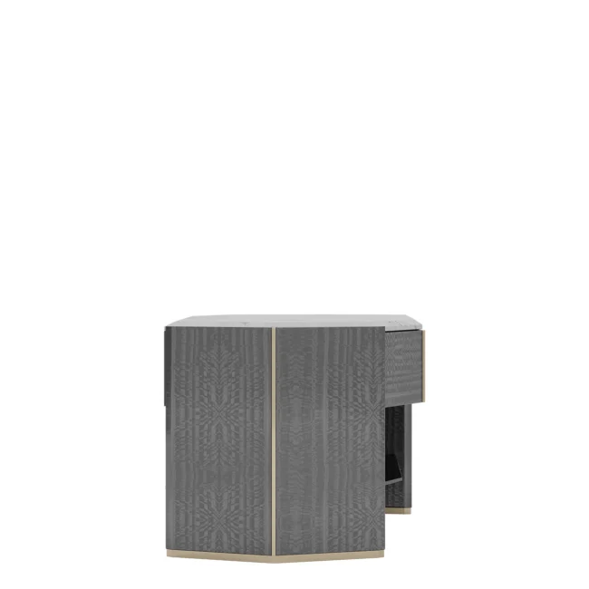The Algerone Nightstand showcases the distinctive strength and elegance that only marble can offer, bringing a touch of modernity to any bedroom design. With its sleek features and geometric lines, this bedside table serves as the perfect choice, featuring a marble countertop that enhances the overall aesthetic.