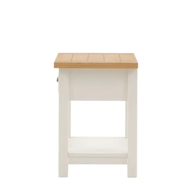 Etonette 1 Drawer Bedside: Add traditional charm to a bedroom with this slim bedside table. With a single drawer and lower shelf, the compact design offers plenty of storage space. The soft white painted finish complements the grooved natural top and metal handle detail. Due to the handmade nature of this product, colour variations may be present.