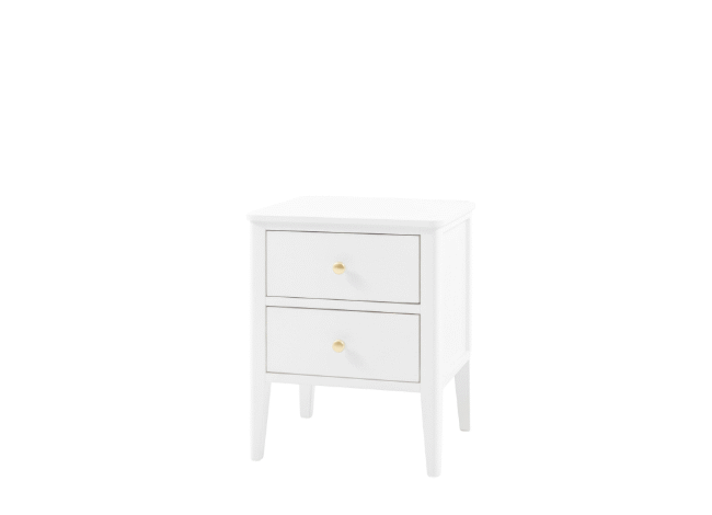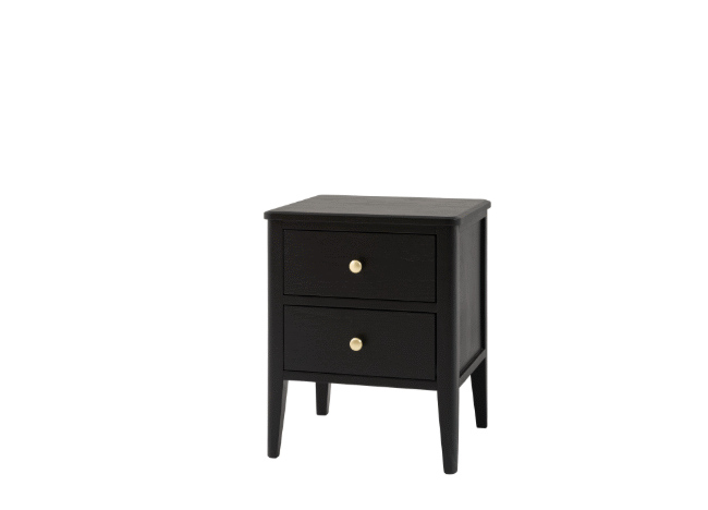 Nocta 2 Drawer Bedside: Elevate any bedroom with this sophisticated bedside table. Its bold black finish is perfectly contrasted by elegant gold handles, bringing a touch of modern luxury to any space. Two spacious drawers offer convenient storage, keeping essentials close at hand. A perfect blend of style and functionality.