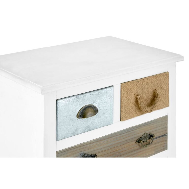 Eastgate 3 Drawer Unit With Shelf: Bringing a coastal look to your décor, the Eastgate 3 drawer unit will provide a stylish storage solution for your bedroom or living space. The sturdy table is made from durable MDF ensuring long lasting use, while the crisp white finish will complement any decor. The 3 drawers, 2 x small and 1 large, feature different finishes for a uniquely charming design. The large drawer has a washed, natural grain, while 2 decorative metal handles allow you to easily open the drawer. One of the smaller drawers features a linen finish and hemp rope handle, while the other has a metal effect coating and metal handle, so you will have plenty of storage space. An open shelf is perfect for keeping books, magazines or decorative ornaments on display, while the top surface is ideal for plants, lamps, flowers and photo frames. A wonderful feature in your room, the Eastgate drawer unit will supplement a contemporary decor.