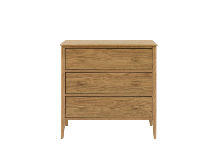 Ollera 3 Drawer Chest: Infuse your home with natural warmth with this 3 drawer chest. Featuring three generous drawers and elegant wood drawer pulls, this chest offers ample storage for clothing, linens, or personal items. Its rich, warm wood finish with strong visible grain brings a comforting and inviting touch to any bedroom, dressing room, or living area, blending organic beauty with practical organisation.