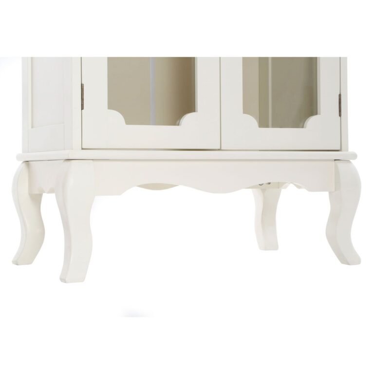 The Recella 2 Glass Doors Cabinet stands on beautifully carved legs, surrounded by a gently undulating hem which enhances its traditional credentials. Its pale ivory colour makes it ideal for styling alongside other subdued tones. Each glass-fronted door of this elegant cabinet is opened by way of a carved metal pendulum door handle. A pair of shelves provide ample display space.
