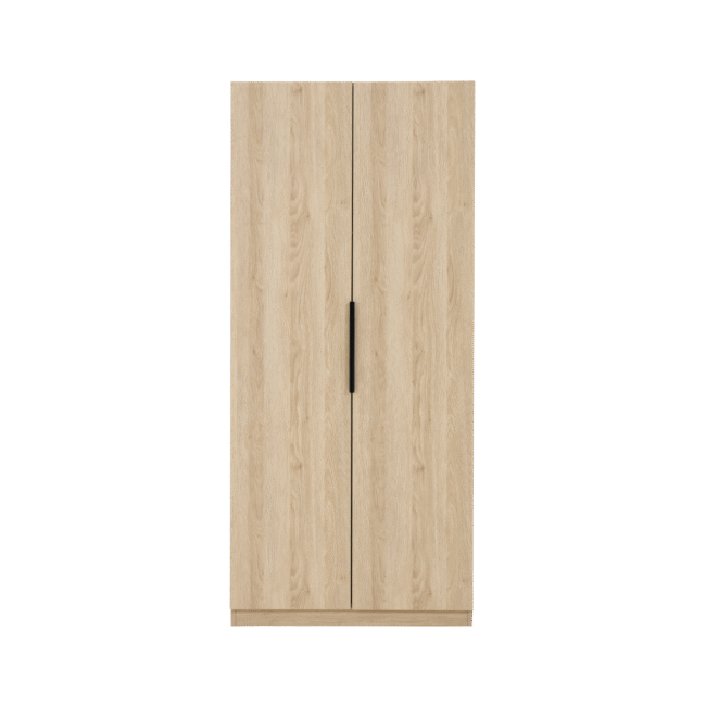 The Luna Wardrobe is ideal for smaller spaces and bedrooms with single occupants. Its doors feature soft-close hinges and sleek, matt black powdered metal handles. The interior of the wardrobe is minimalist, with a hanging rail and shelf above it. Easily accessible, the top of the wardrobe can also be used for extra storage. Designed with durable, sustainable materials, it is a functional and environmentally conscious solution.