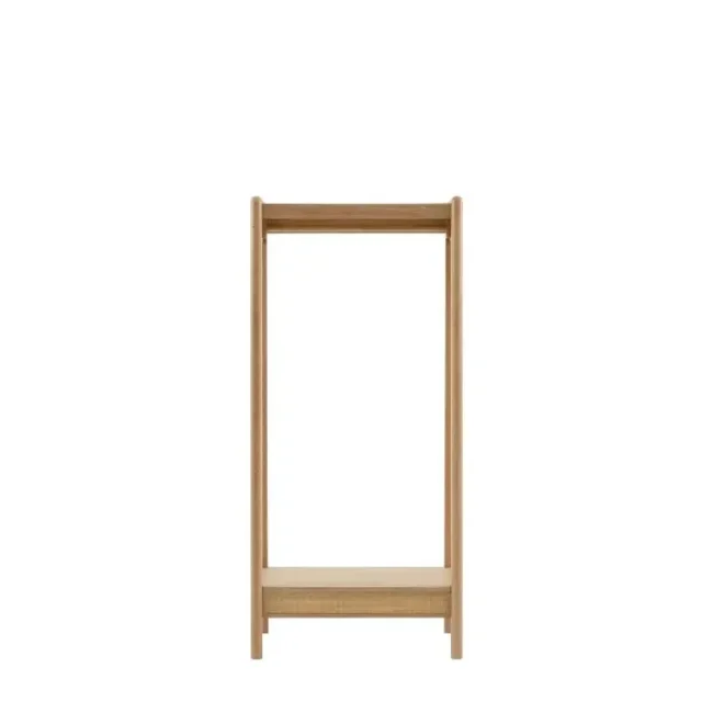 Urbi Open Wardrobe: Bring a touch of rustic charm with this beautifully crafted open wardrobe; blending oak solids, veneers, and solid rubberwood timbers for durability and warmth. The standout feature being the natural hand-woven rattan, adding texture and an artisanal feel. Finished in a soft lime-washed tone, the collection has a relaxed, lived-in character. Gently curved tops lend a sense of softness, while bronzed metal handles add a subtle vintage touch. Perfect for creating a calming, timeless bedroom space with natural beauty at its heart.