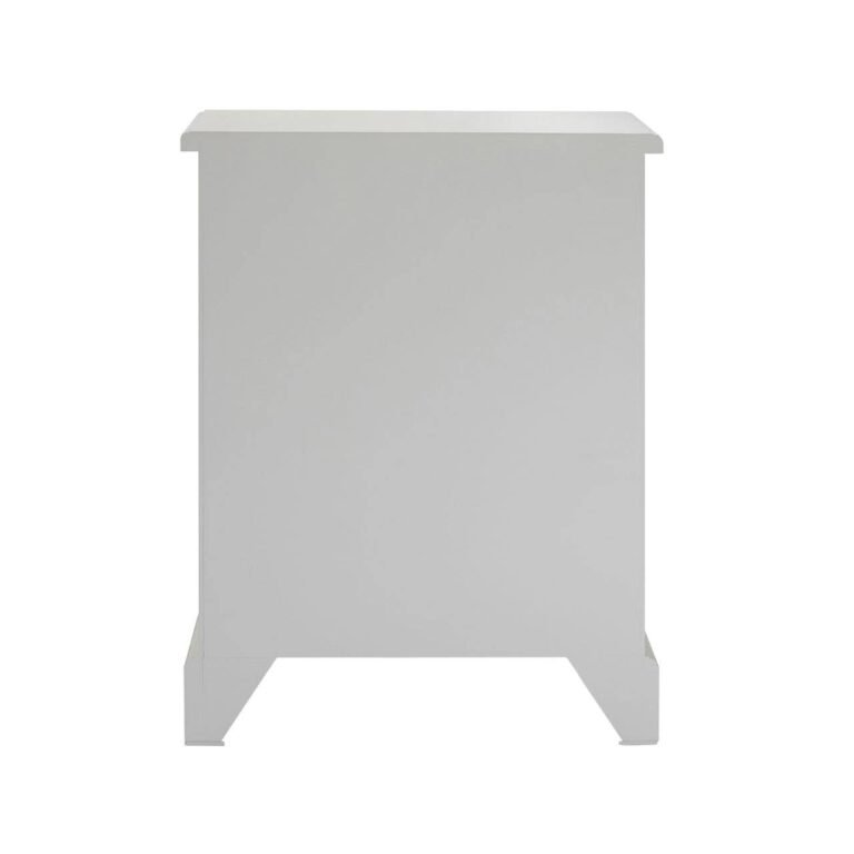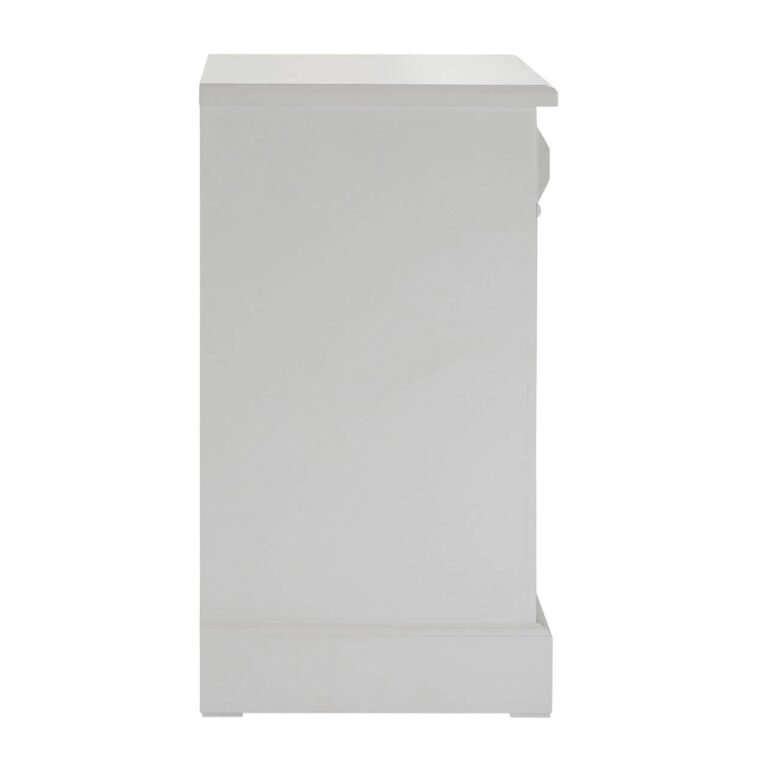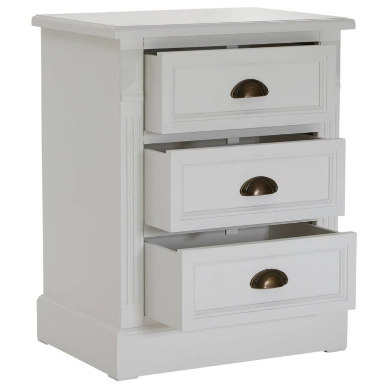 Harringhton 3 Drawer Chest: This compact chest makes an impression thanks to its crisp white finish and carved detail. Its three drawers feature bevelled detail that frames the metal cup handles. The grooved lines correspond with the carved detail on its flanks. Each handle is made from weathered metal, their copper finish standing out clearly against the white wood.