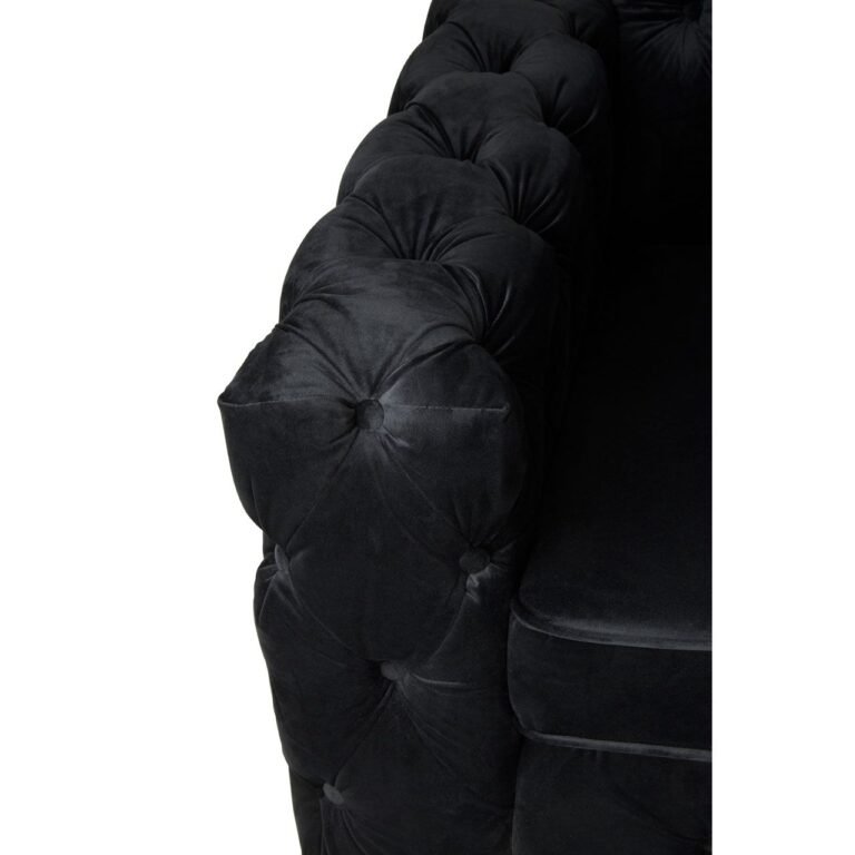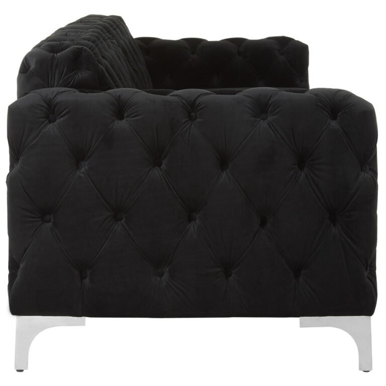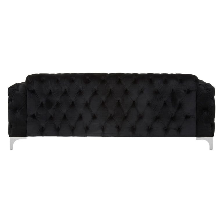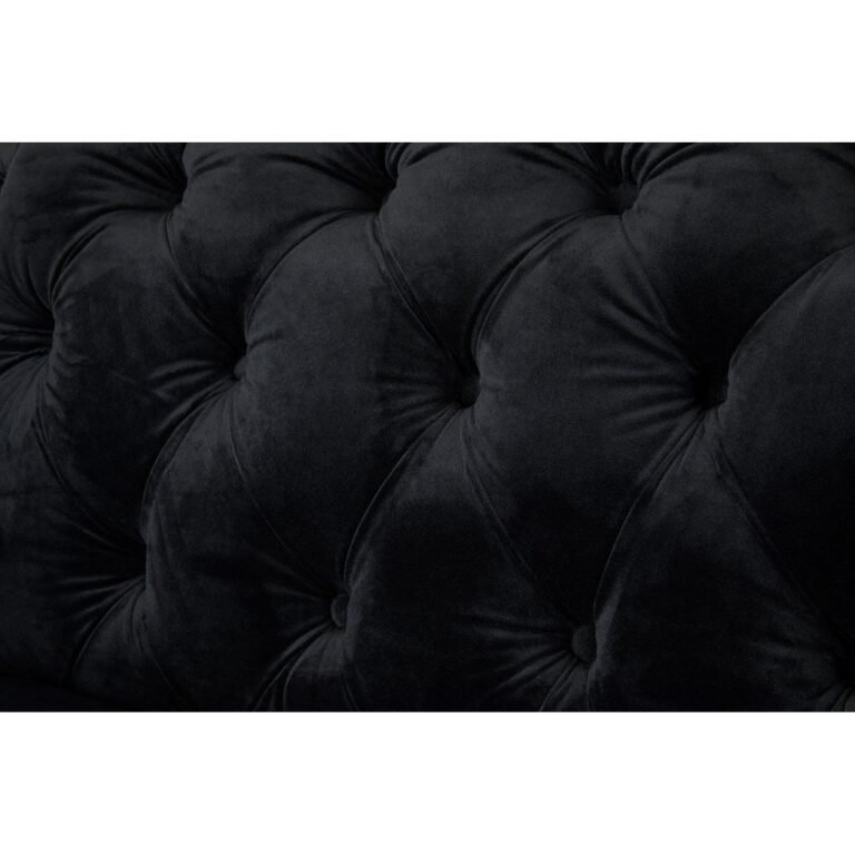 This Adrina Chesterfield Sofa makes a statement with its distinctive quilted design and bold black palette. The seats are left unquilted to contrast and the black velvet upholstery creates a luxurious finish. Its feet are made from metal and have a reflective silver finish. Coordinate it with the Adrina Chesterfield Sofa.