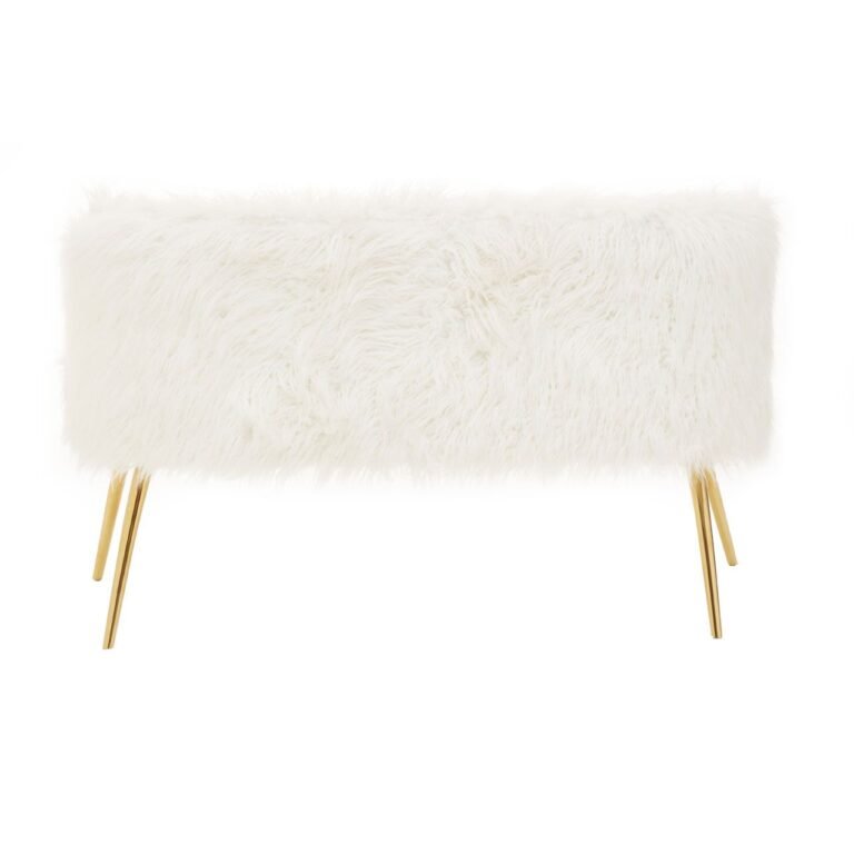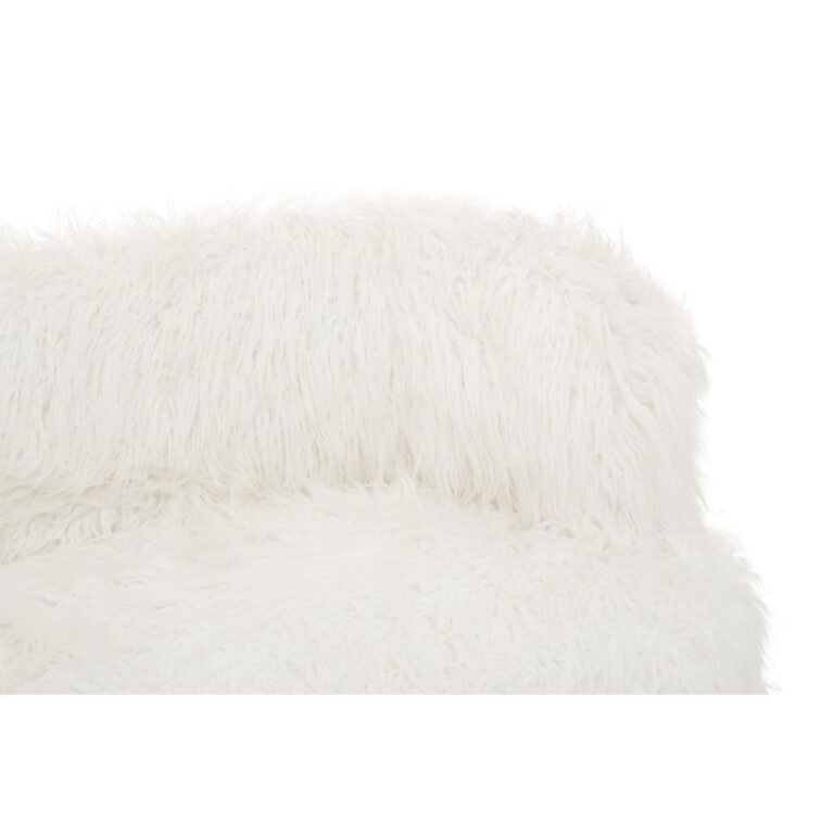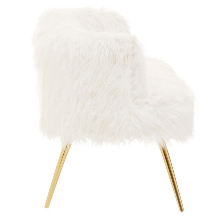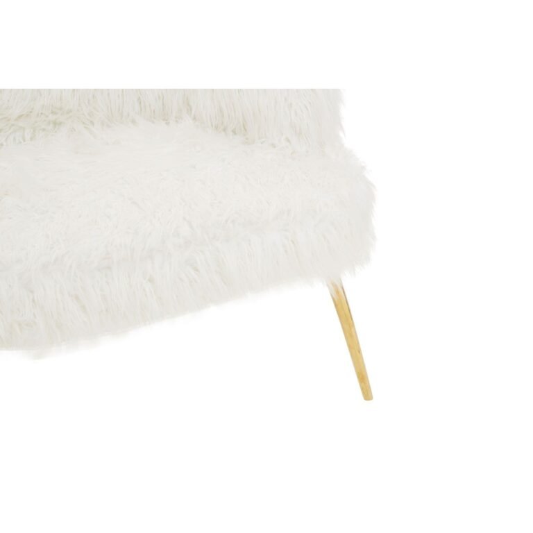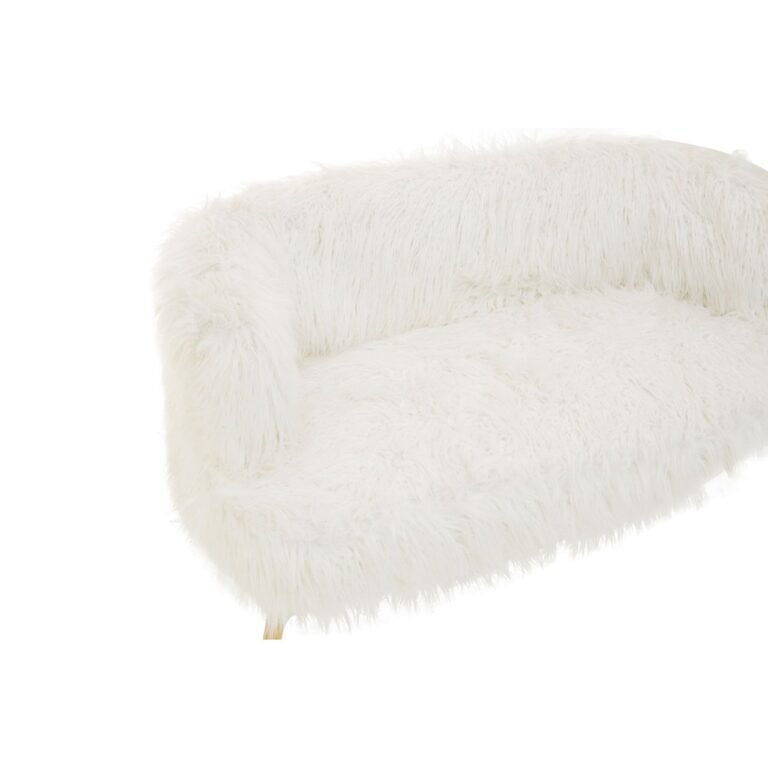 Alammie Sofa With Gold Finish Legs; Upholstered in soft faux fur, the sofa’s backrest and seat have an opulent feel, lending it to luxe style interiors. The simplistic seat is raised from the ground by slender, slightly tapered legs. The four legs are created from robust metal and feature a stylish gold finish, contrasting with the crisp white seat and enhancing the tables luxurious appeal.