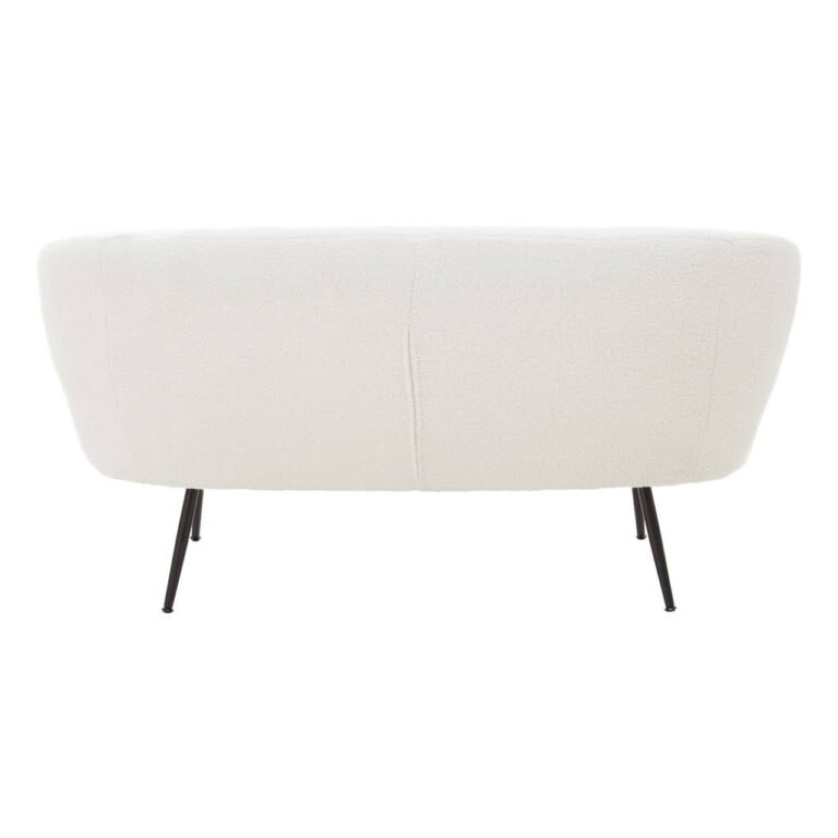 This two-seat sofa introduces mid-century sophistication with angular black finish legs. Featuring a curved aesthetic, the seat is covered in plush white teddy fabric that is elevated with sumptuous foam padding.