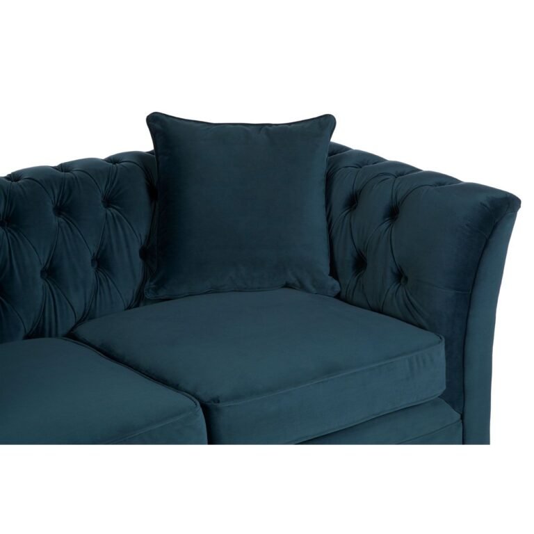 A contemporary interpretation of the traditional Chesterfield design, the Barina 2 Seat Midnight Sofa features classic button tuft detail that accentuates the elegant curve of the back and armrests. The black carved wood feet have small wheels, allowing the sofa to be easily moved and repositioned. Two matching cushions coordinate with the sofa’s upholstery and enhance the comfort of this statement piece.