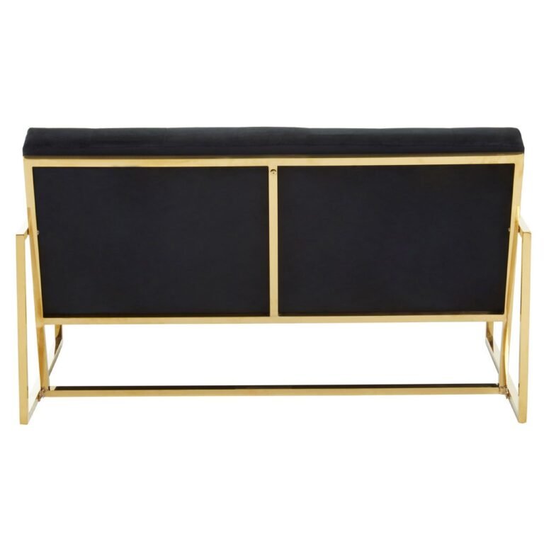 This two-seat sofa boasts a glam appeal to the interior with its foam padded seat and back upholstered in plush black velvet. Featuring deep button tufting, this sofa is perched neatly on a sleek and slender metal frame that ensures style with stability.