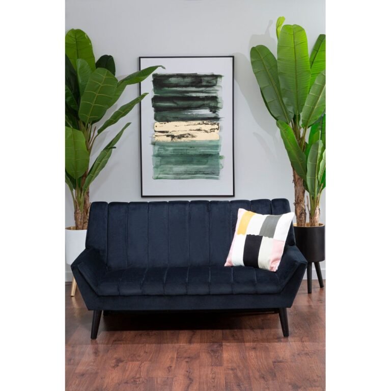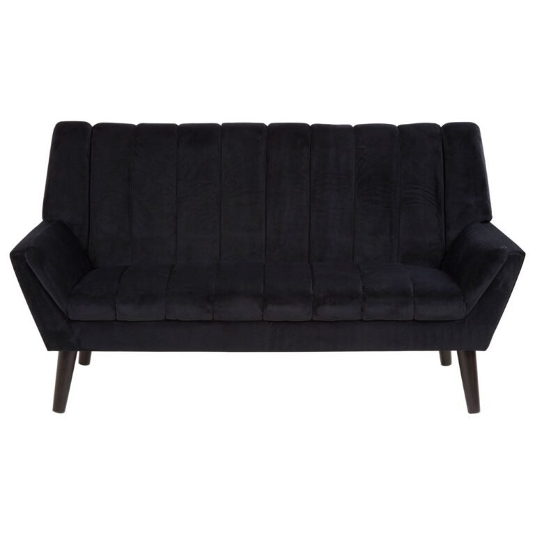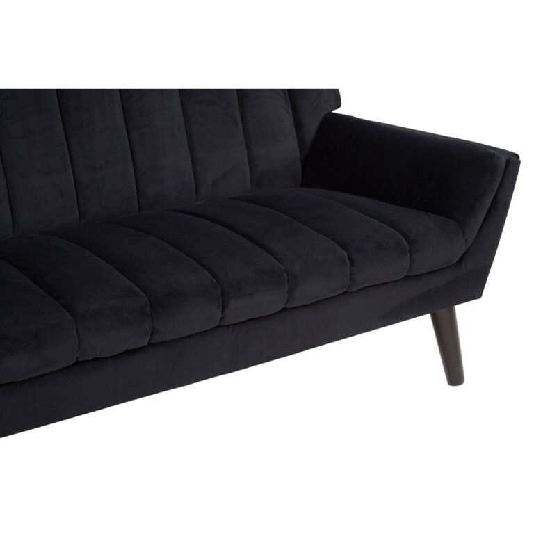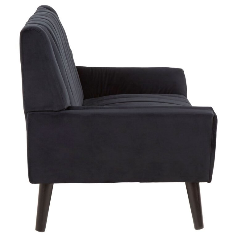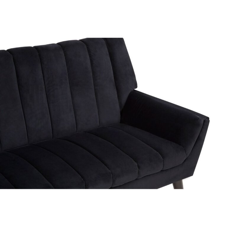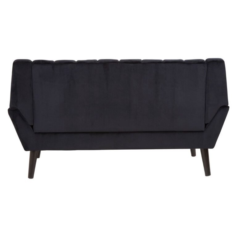 With tapered sides and splayed legs, this Vinar 2 Seat Black Sofa has a simple and modern silhouette, ideal for a Scandi themed living room. Subtle channel detail adorns the back and seat cushions on the sofa and adds to the overall streamlined and modern look.