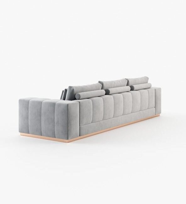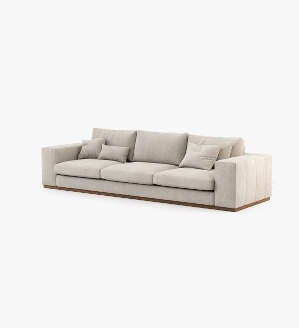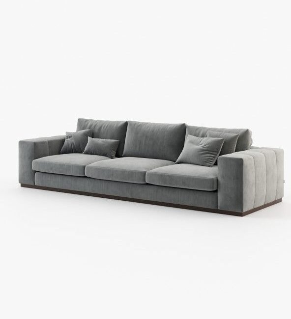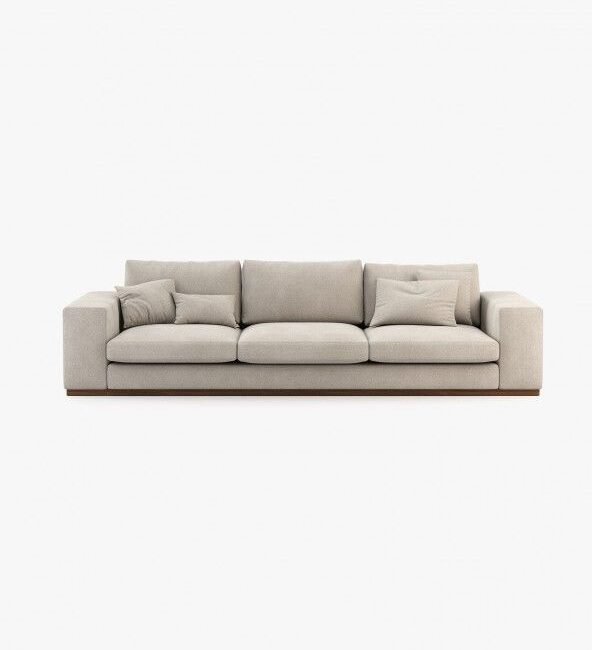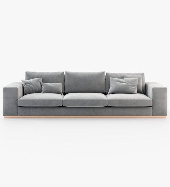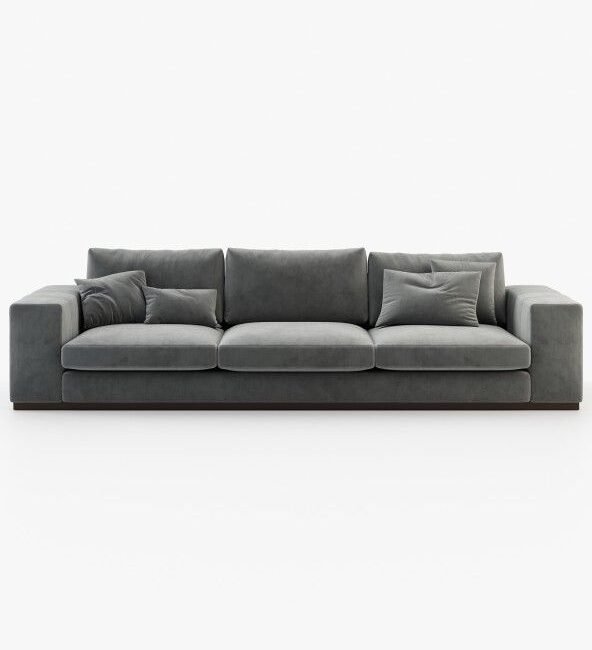 Charlie 3 Seater sofa is a contemporary and comfortable piece designed for peaceful living rooms, featuring a sleek metal base and wide arms, available with chaise-longue and in two or three-seater options.