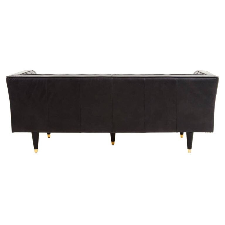 The Claren Three Seat Sofa With Flared Arms antique ebony leather sofa combines organic elements to upgrade style and sophistication in the living room.