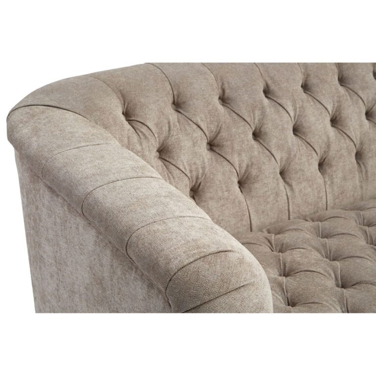The sumptuous Enton Natural Fabric 3 Seater Sofa boasts a wide and deep seating platform, large enough to accommodate three people comfortably. Its strong pine frame is covered in thick down, which in turn is dressed with soft natural toned fabric. The tufted and buttoned design conveys classical restraint, with curving armrests that pinch the fabric, adding texture. Silver coloured wooden feet complete the look.