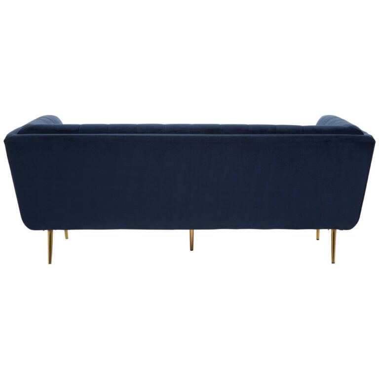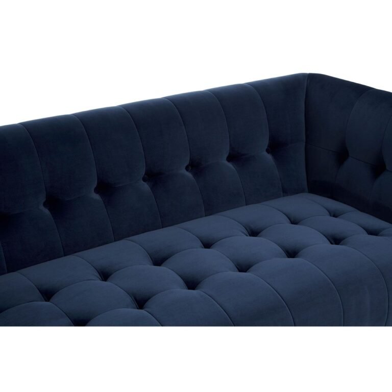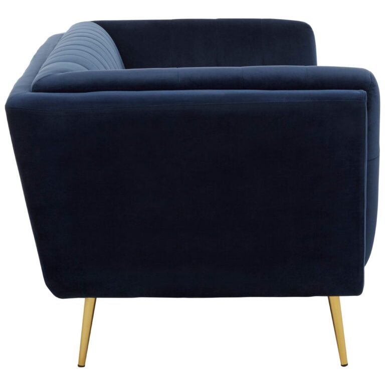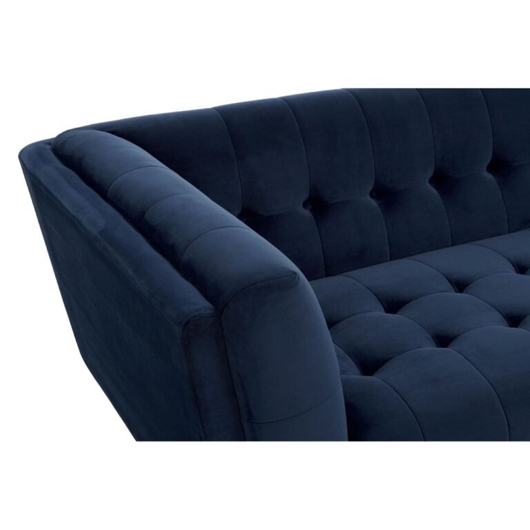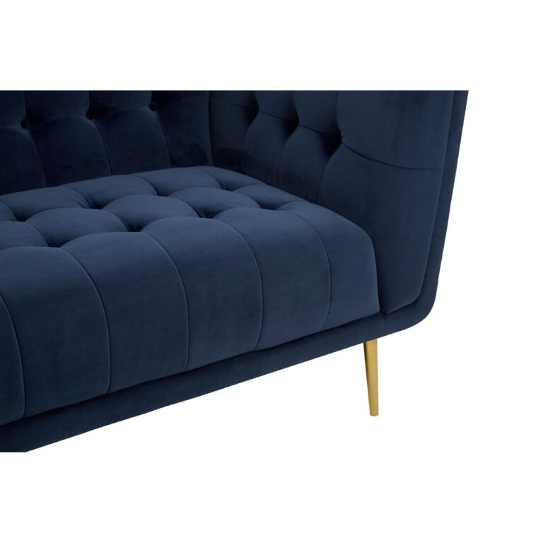 This Gainsborough 3 Seat Blue Velvet Sofa adds a homely touch to the minimalist and mid-century modern living room. This luxe three-seater sofa features a solid wooden frame, box patterned, heavily padded upholstery with sleek warm metallic legs while adding elegance.