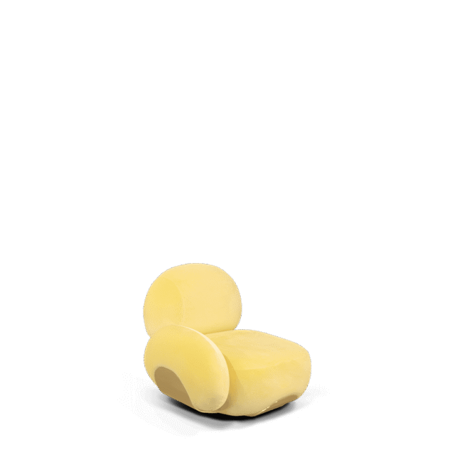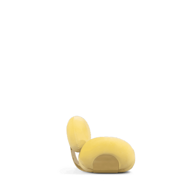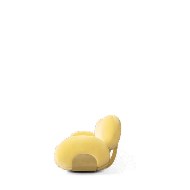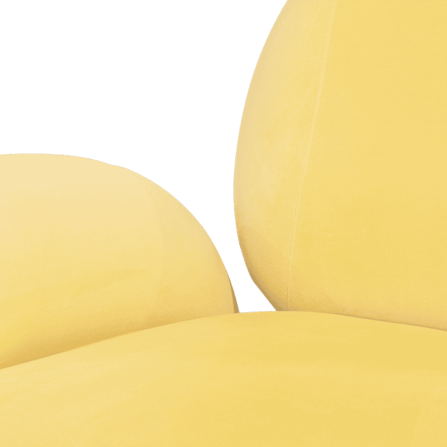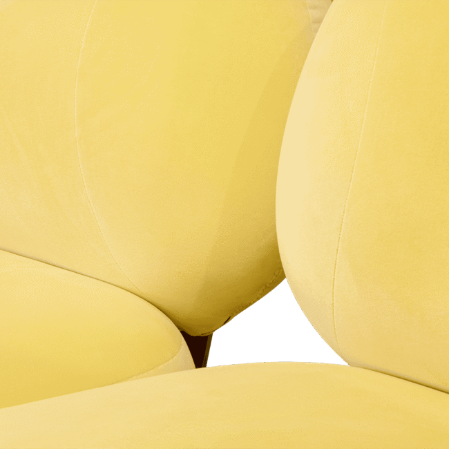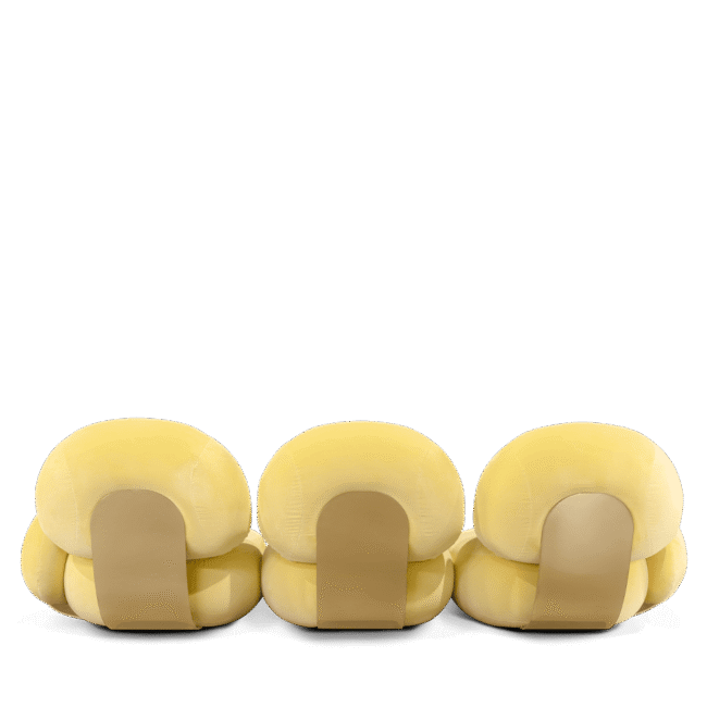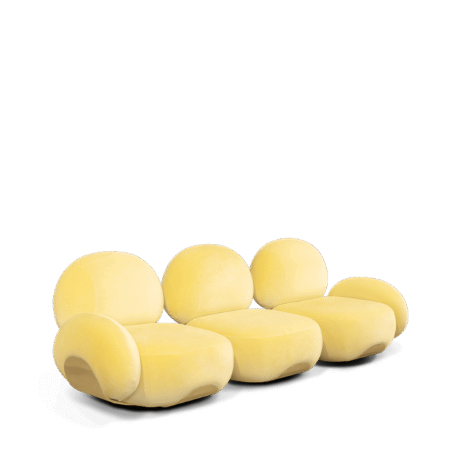 Karlotta sofa: A contemporary masterpiece by Karim Rashid, featuring vibrant colors, a luxurious metallic base, and playful pebble-like forms. Softening our physical landscape by showing how a contemporary world can be warm, human, and pleasurable, making this unique three-seater sofa a statement for any design project.