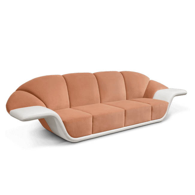 Klaude Sofa, designed by Karim Rashid, exemplifies his constant quest for reimagining objects with a human and sensual connection. With elegant, sloping sides that beckon you to sit down, this modern sofa is inviting and comfortable. Upholstered with high-quality fabrics, it blends both style and functionality seamlessly into any design.