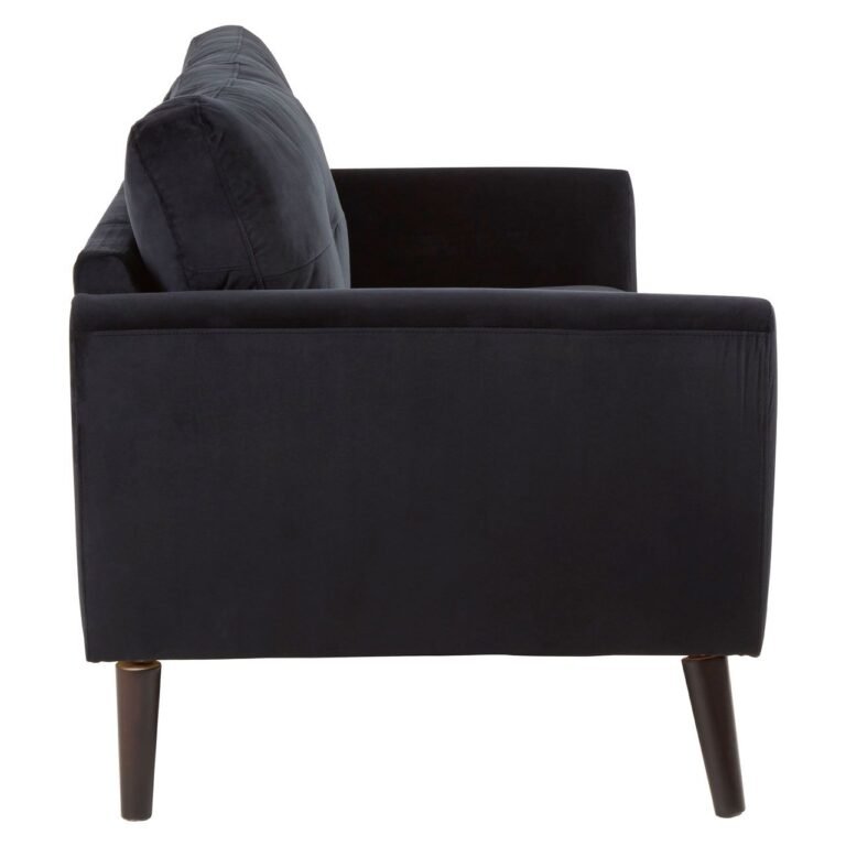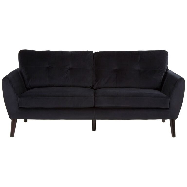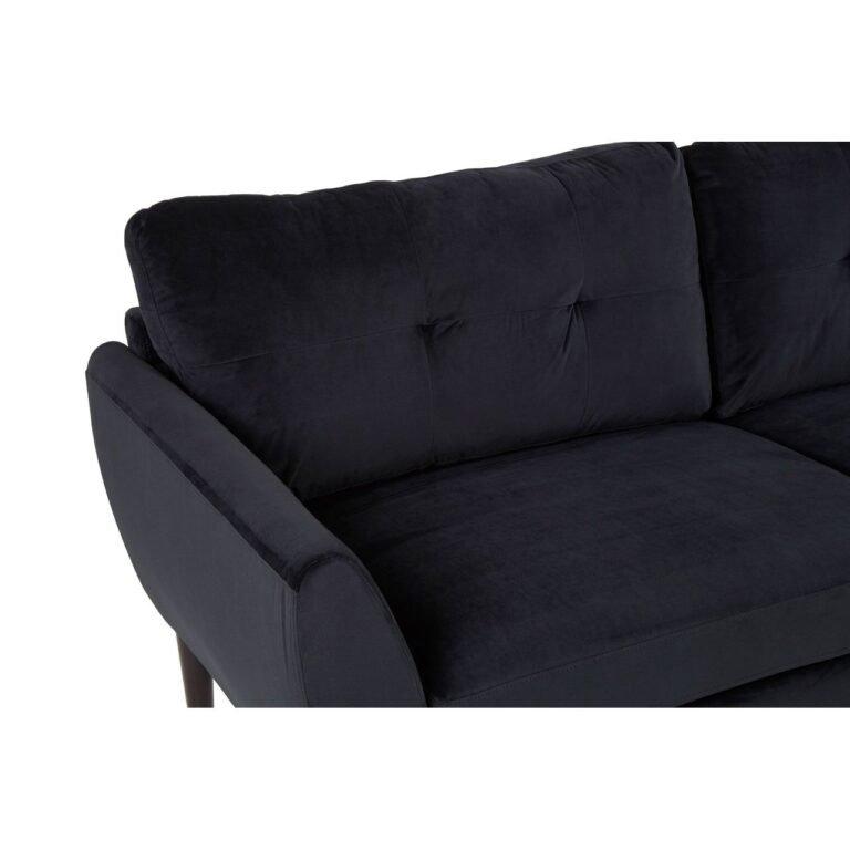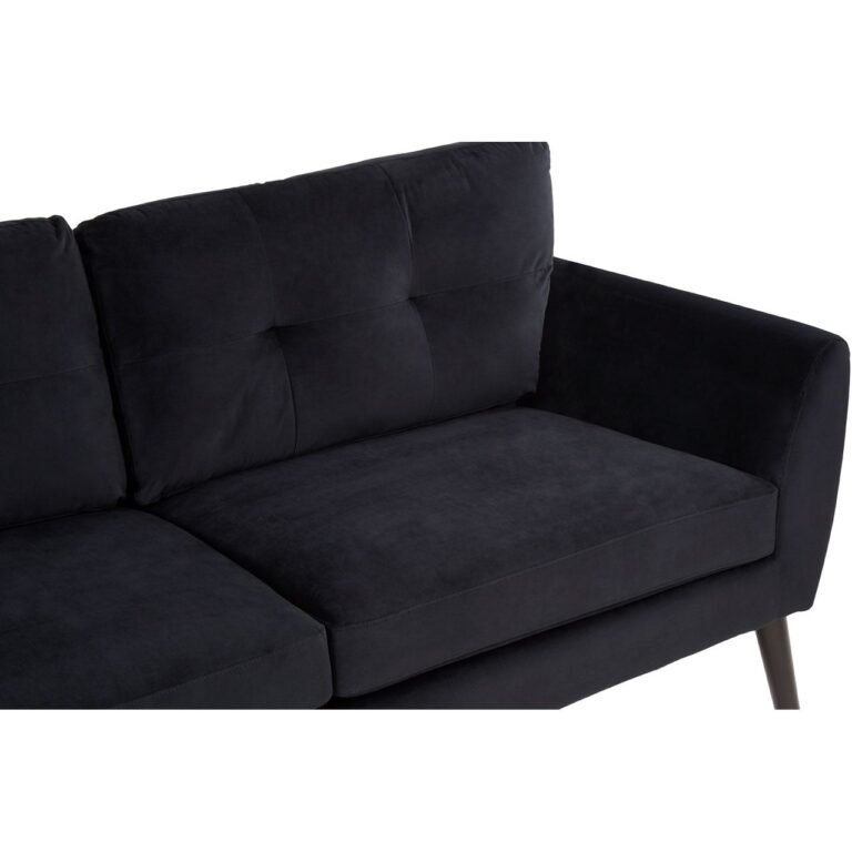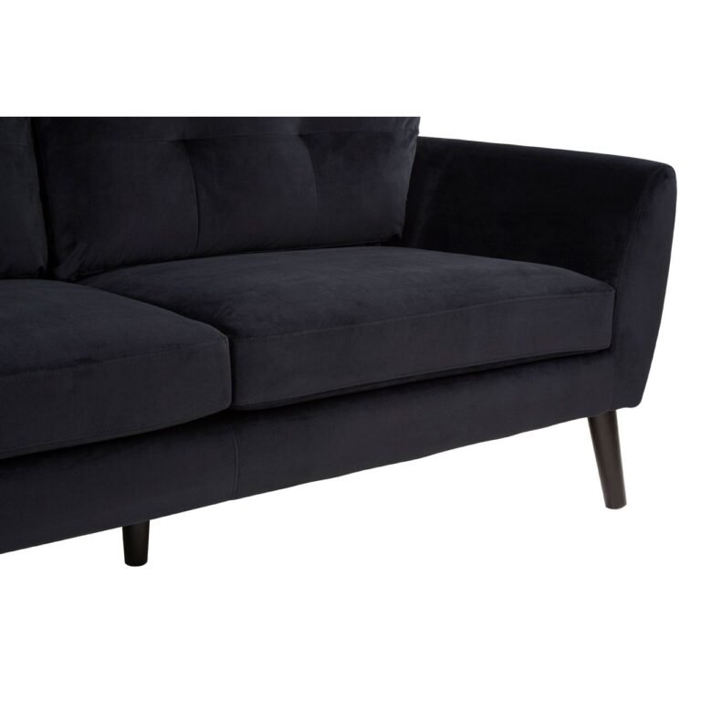 With tapered sides and splayed legs, this Lattice 3 Seat Black Sofa has a simple and modern silhouette, ideal for a Scandi themed living room. Subtle button backed detail adorns the back cushions on the sofa and adds to the overall look.