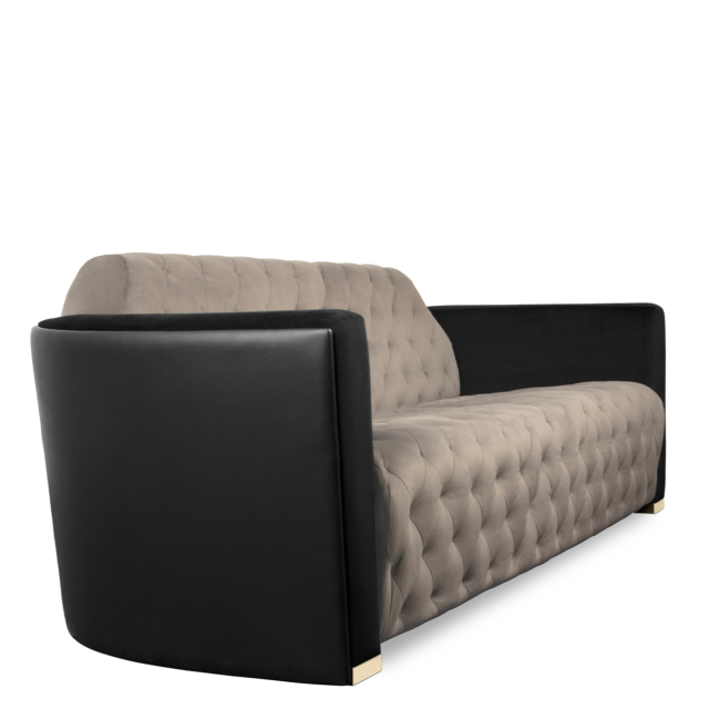 The Navis Sofa combines the strength of an era with modern comfort to create a bold yet elegant piece. Luxuriously crafted with velvet, leather, and polished brass accents, this sofa offers a discreet yet sumptuous contrast that adds sophistication to any living room design.
