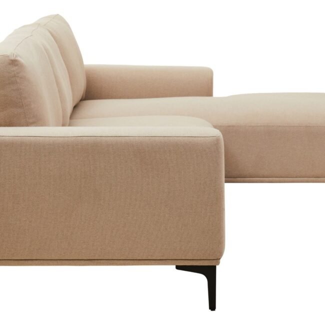Take comfort to a new level with the Ockley 3 Seat Natural Fabric Left Chaise Sofa. The laid back design of the sofa is a real work of art offering ample space with three seats and a left chaise. The back and seats are sumptuously upholstered and supported by black metal legs.