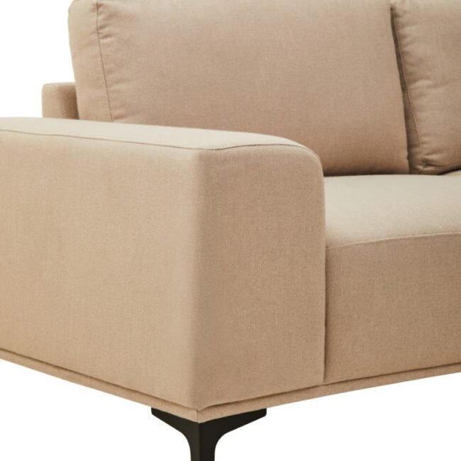 The Ockley 3 Seat Natural Fabric Left Chaise Sofa is redefining comfort and elegance with a plush padded laid back left chaise and sleek metal legs