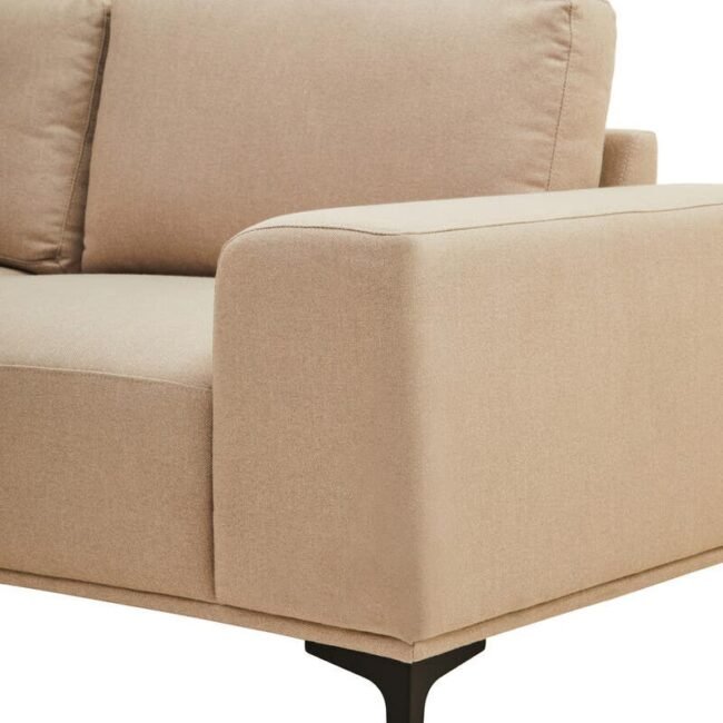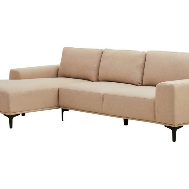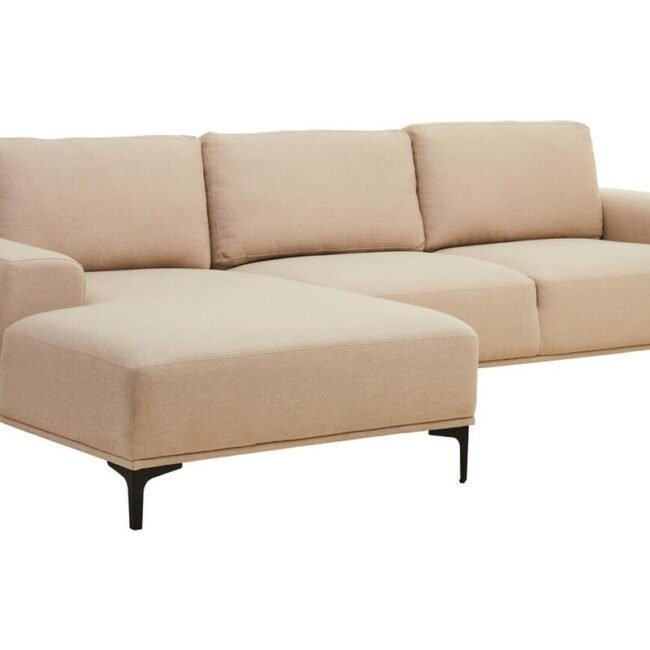 The Ockley 3 Seat Natural Fabric Right Chaise Sofa is redefining comfort and elegance with a plush padded laid back right chase and sleek metallic legs