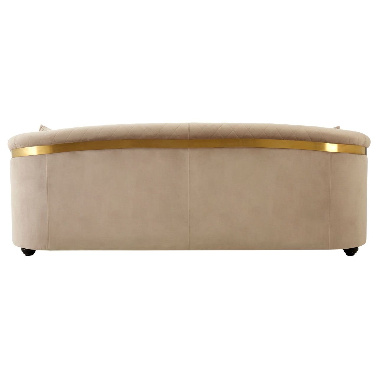 The gold finish metal trim that accentuates the Priji 3 Seat Sofa’s design lines adds to its art deco look. Upholstered with tactile velvet, the seat is formed from one while cushion, while the backrest features a diamond stitch pattern. Its light grey colour makes it easy to style with a range of colour palettes. Carved wooden feet raise it slightly from the floor.