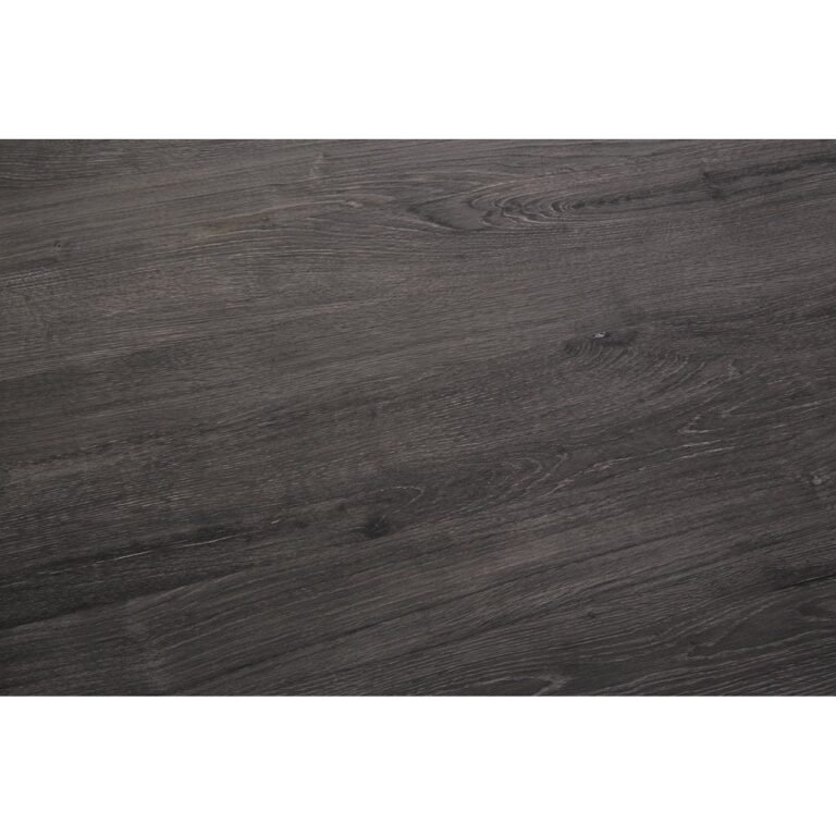 This Tanube table is a natural statement piece for the dining area. The thick black veneer wood top is notable for its bold grain and textured finish. The table is suported by black legs.