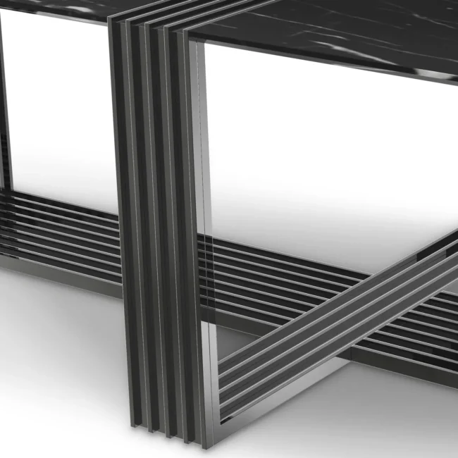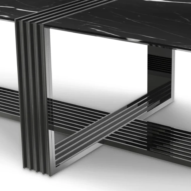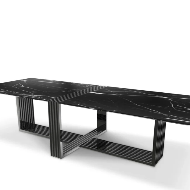The Vertigo Black Dining Table XL is an impressive furniture piece with a sublime shape, representing the ultimate in design. Made with high-end materials such as stainless steel and marble, this table creates a unique and sophisticated environment in any dining room setting.MATERIALS