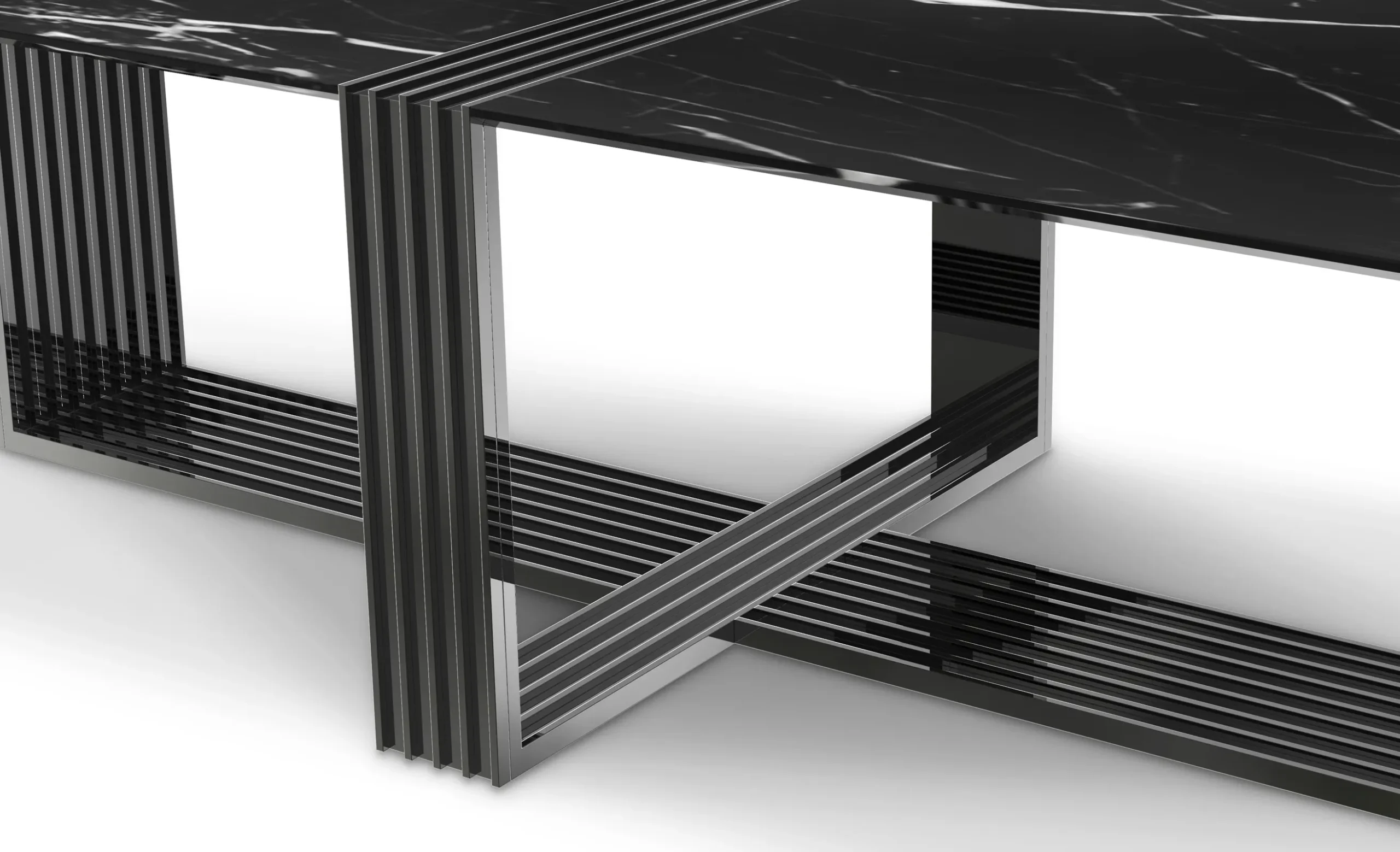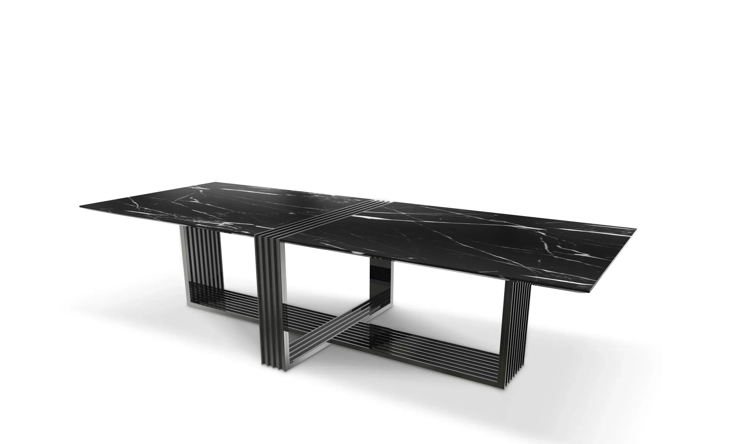 The Vertigo Black Dining Table XL is an impressive furniture piece with a sublime shape, representing the ultimate in design. Made with high-end materials such as stainless steel and marble, this table creates a unique and sophisticated environment in any dining room setting.MATERIALS