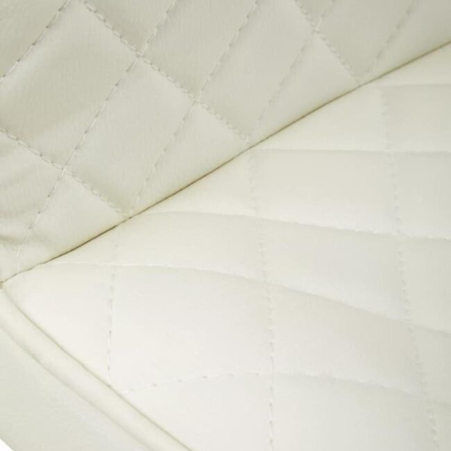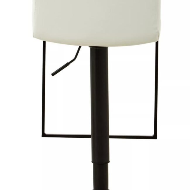 The Aina White Leather Effect and Black Base Bar chair has a stylish cushioned seat with a tufted low back. The white leather effect upholstery is set off by the black metal base. The slim rod attached to the seat serves as a footrest.