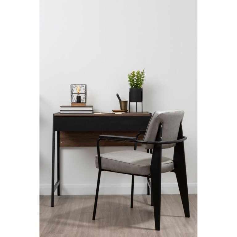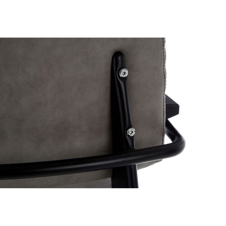 Allyson Ash Armchair: The metal frame is powder coated in order to enhance durability, its black finish providing a harmonious counterpoint to the ash coloured upholstery. Further coordination is achieved via the black wooden blocks on each arm. The thick rear legs contrast with the slim, tubular frame. Stitching lends texture to the smooth cushion.