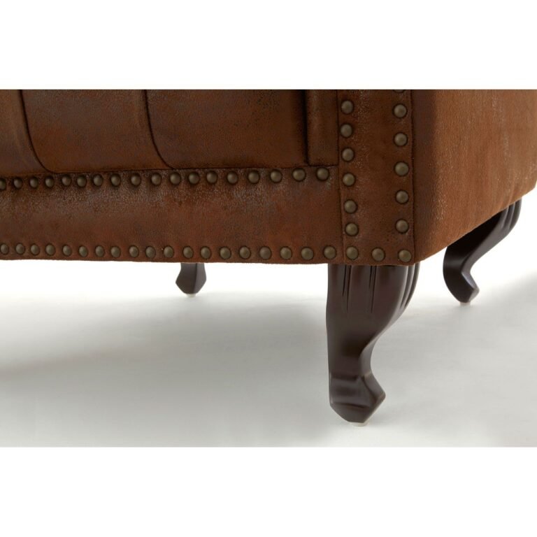 Argen Park Brown Tall Porter Chair: This striking chair is upholstered in high quality brown microfibre leather, soft and breathable while highly durable. Its tufted and buttoned seat, winged back and rolled arms all contribute to its classical look. Exquisitely carved hardwood legs further enhance the traditional feel, while silver studs introduce a metallic accent to its natural look. Use it to add drama to a hallway or living room corner space.