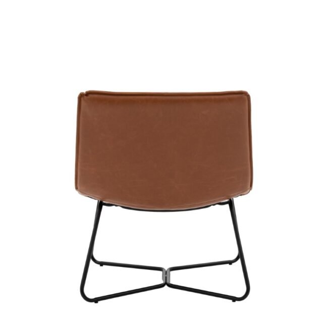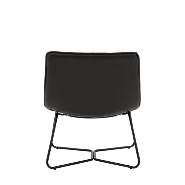 Awe Lounge Chair: This contemporary occasional chair embodies both comfort and style. Its chic design features a curved seat, upholstered in faux leather, and sleek black metal frame. It is available in two other colours, and matching dining chairs and stools are available.
