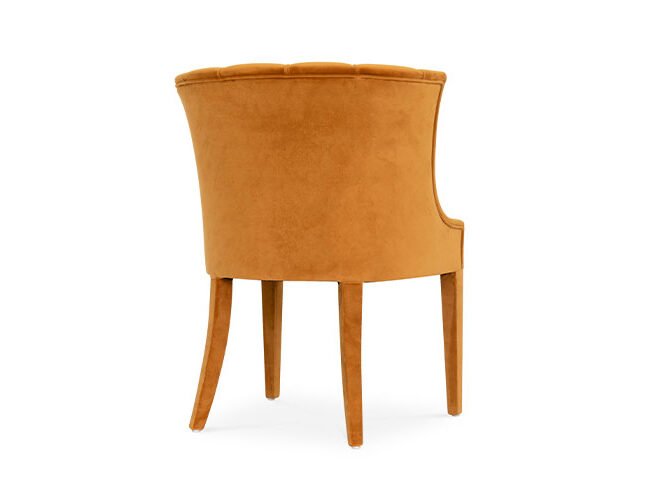 Begonia is a beautiful flower from tropical countries. Inspired by its warm energies and the bold shape of its petals, our designers conceived BEGONIA Velvet Upholstered Dining Chair. Its charming curves and soft cotton velvet upholstery make this the perfect curved back dining chair, an elegant choice for any modern interior design.