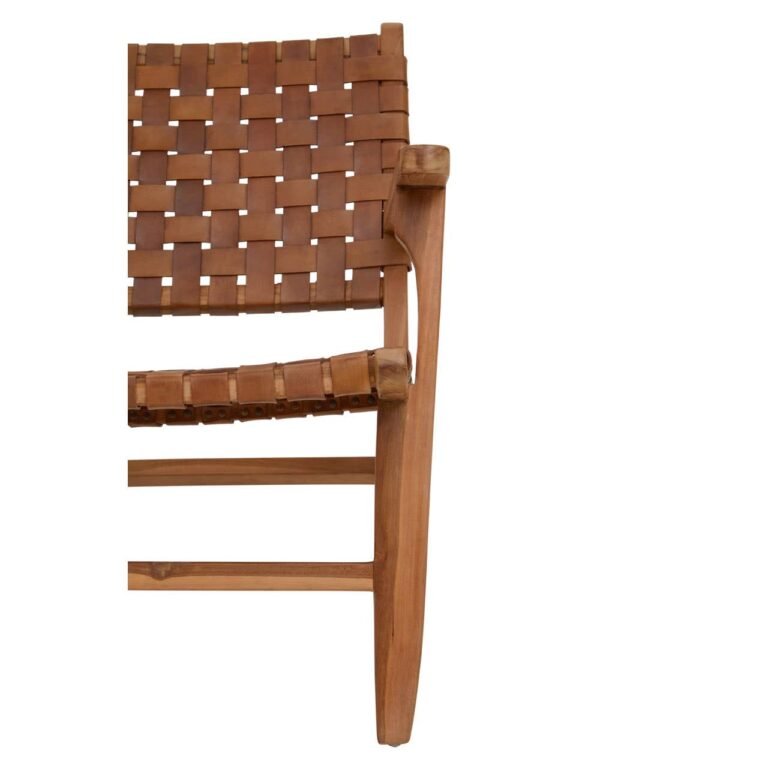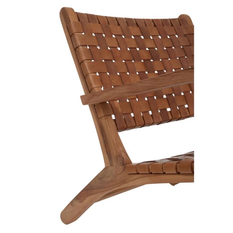 Harrington Armchair: This chair is expertly handcrafted from genuine leather and exhibits a series of leather straps forming a lattice pattern weaving. The teak wood frame of this chair ensures stability, while the ergonomic arms offer an optimum seating experience.