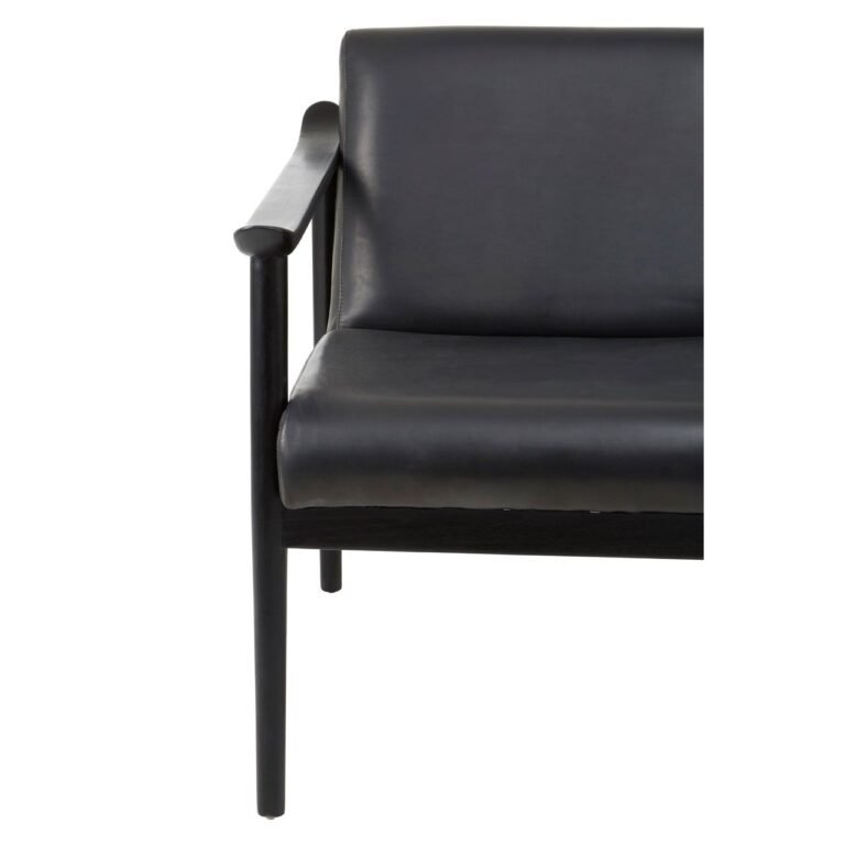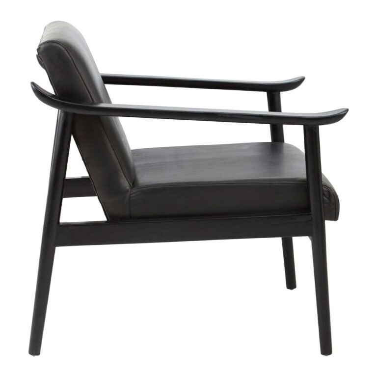 The classic mid-century design is brought together in the Stirling Black Chair. The luxury of the soft cow leather is supported by the simplistic yet classic design of the black teak wood arms and legs. Sitting with a slightly reclined seating position it is comfortable and supportive to the individual.