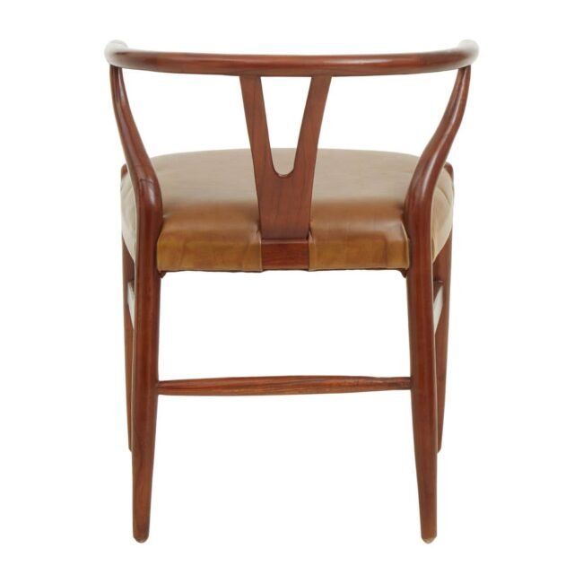 A design triumph and equally attractive from front to back, this stool is a true masterpiece from any angle. The intricate brown teak frame is complemented by the camel cow leather seat, creating a sleek and cohesive look.