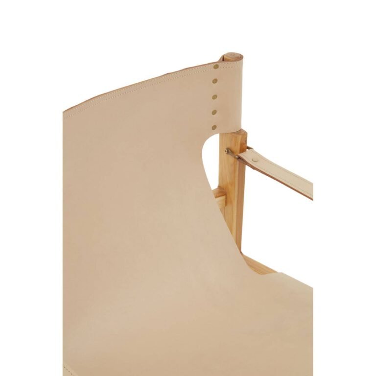 Stirling Cream Leather And Teak Wood Chair: The natural cow leather seat and backrest of this chair form a sling design that is wrapped neatly around a solid natural teak wood frame. The clean line design contributes to the minimal aesthetics of this chair, while the studs add a metallic detail.