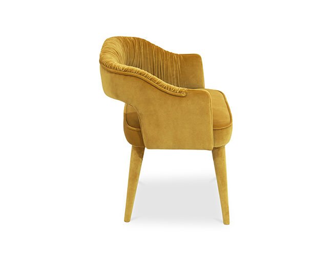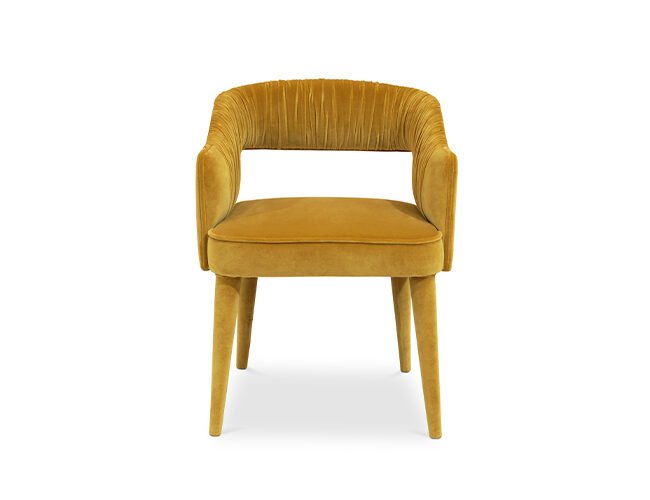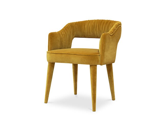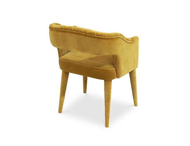 STOLA Dining Chair received its name from the way Ancient Roman women were dressed. As Roman women’s clothes were a symbol of elegance and strength, this fully upholstered velvet dining chair with draped fabric in the inner back will bring the same elegance and fierceness to your dining room.