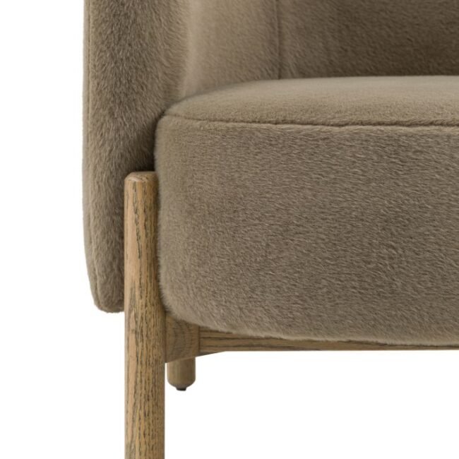 Tilden Armchair: This stunning armchair would look at home in a wide range of interiors. The deep seat and beautifully curved back are upholstered in a lovely natural coloured fabric which pairs perfectly with the stunning wooden frame and legs. Also available in brown leather and matching footstools are available.