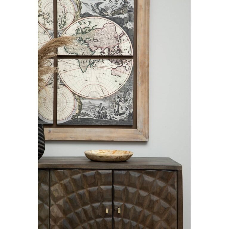 Corta Sideboard: The appealing grey and gold finished rhombus patterns highlight the additional geometric style of this sideboard. Ample storage placed on sturdy gold legs offers functionality and versatility. Indeed a wise choice to display accessories and storing items.
