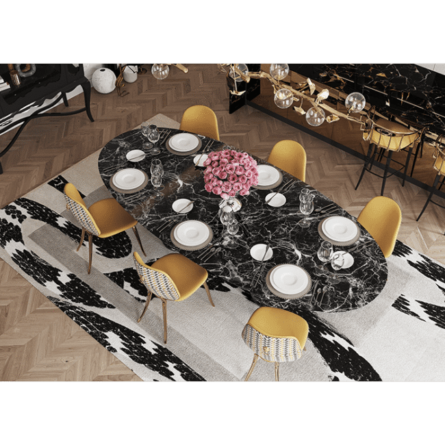 Playing with function and sculptural form, Pietra dining table shapes a timeless experience through its classical aura and finest Nero Marquina black marble.