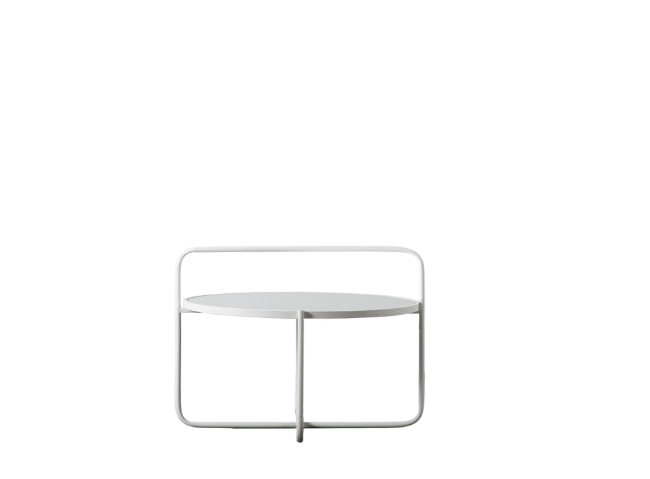Add a contemporary touch to a room with this stylish coffee table. The stunning design features a continuation of one section of the metal base, up and over the table to create a ‘handle’ effect. There is a matching side table, and both are also available in black and white.
