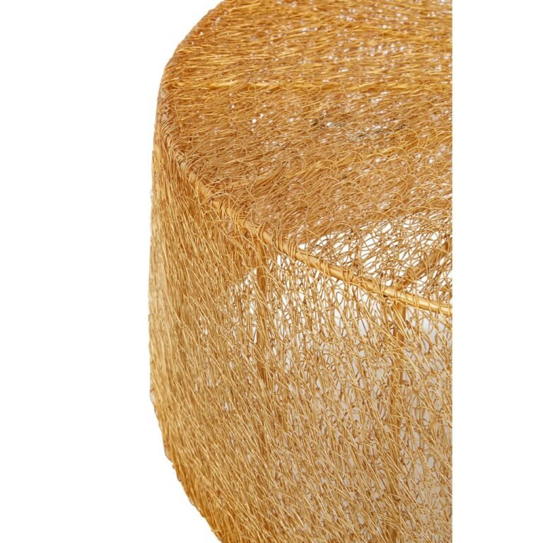 The Foxley Iron Coffee Table With Gold Finishis structured around a circular iron frame, with vertical lines at the side and a spoke configuration at the top. Slender strands of iron spread over the frame to form a luxurious nest effect, giving the table a semi-transparent look. Style it with metallic coloured accessories and lighting. *This item is handcrafted so please expect slight variations to the finish*