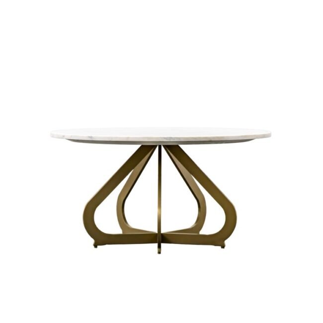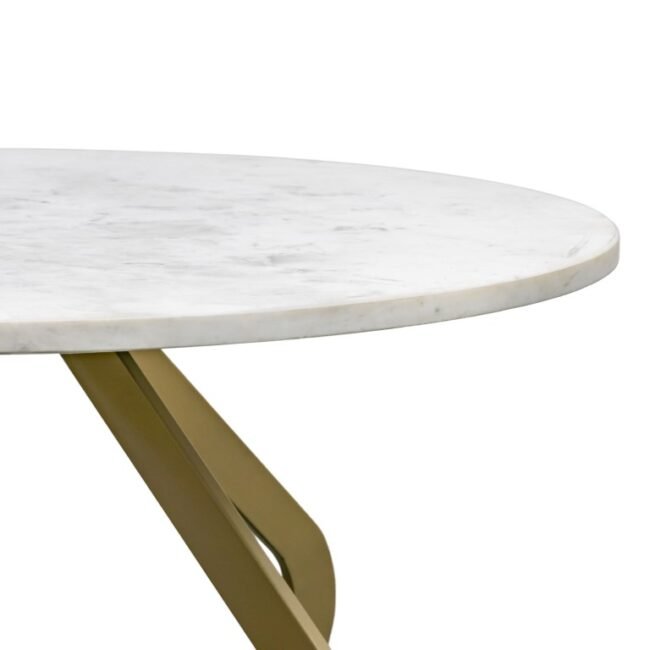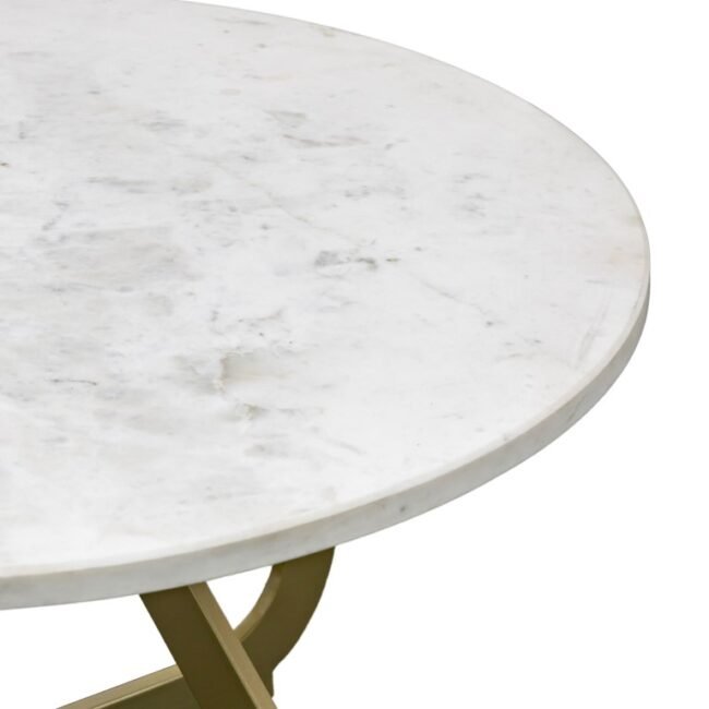 Add a touch of glamour to a room with this stunning coffee table. The stylish, contemporary design features a white marble top paired with an eye-catching metal base with a brushed brass finish. This is also offered with a matt black finish base.